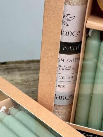 For all the bath lovers! Included are vegan bath salts with pure essential oils and green candles with a candle holder to hold safely whilst having a spiritual soak :)