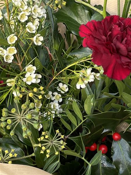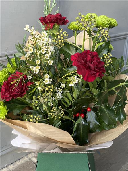 Send your love this Christmas with a lovely selection of flowers presented in a gorgeous kraft box. All hand made by one of our florist's.