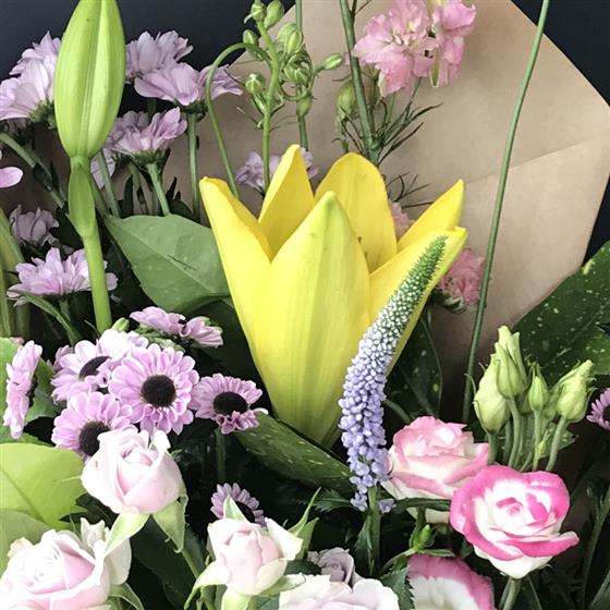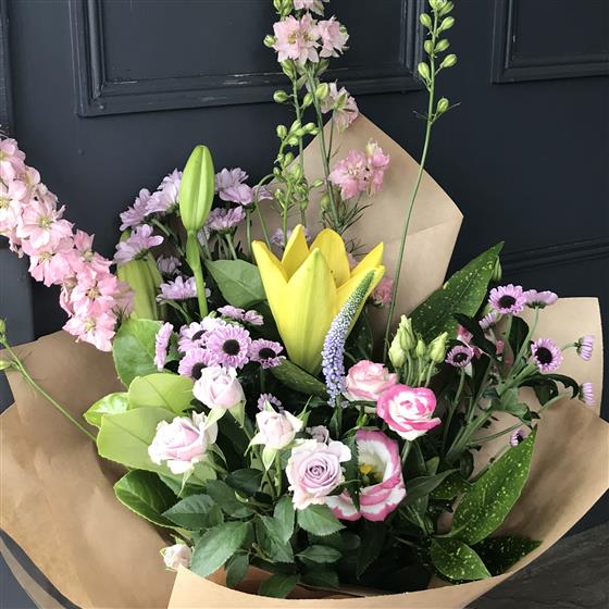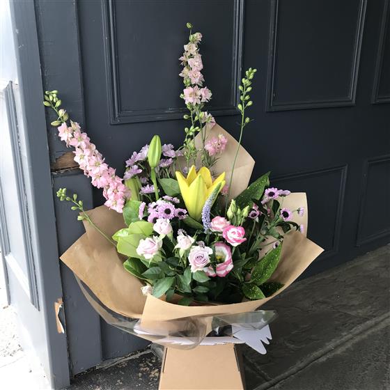 Let our florist choice a lovely mix of Seasonal flowers presented in an eco friendly Kraft box. Please note the photograph is for illustration purposes only, our florist will choice the best blooms of the day for you.