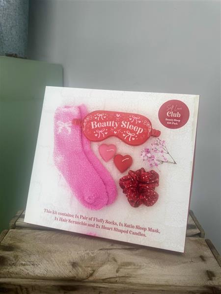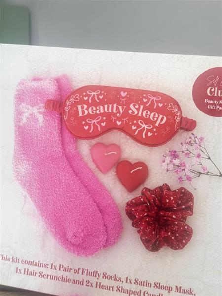 Are you looking to add a gift on for your partner for Valentines Day? Why don't you treat her to this gift set which includes one pair of fluffy socks, one satin sleep mask, one hair scrunchie and two love heart tealight candles